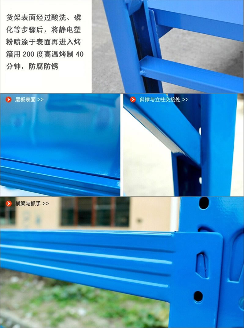 3、货架材料截面优化,多种管材选择,提高承截力。